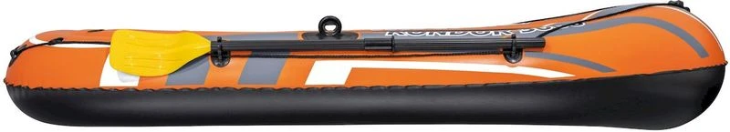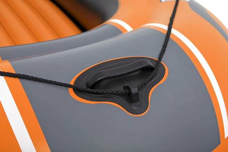 De Bestway Kondor is gemaakt van duurzaam PVC waardoor je stevig in het bootje zit. Daarnaast heeft de opblaasboot twee roeidollen waar de peddels doorheen kunnen. Hierdoor roei je comfortabel zonder de boot te beschadigen. Dankzij het handvat en het grijpkoord dat rondom de boot is bevestigd, klim je gemakkelijk terug op de boot of verplaats je hem.