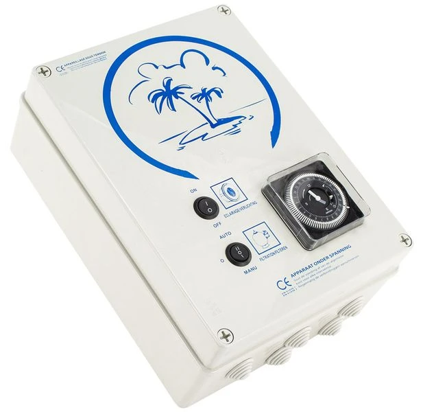 Zet je pomp, verlichting en verwarming op een automatische sturing om meer controle te krijgen over de looptijd en daarmee het energieverbruik van je installatie. Met deze uitgebreide sturingskast heb je de mogelijkheid om een dagklok in te stellen of de zwembadpomp handmatig in te schakelen door de schakelaar op de schakelkast.